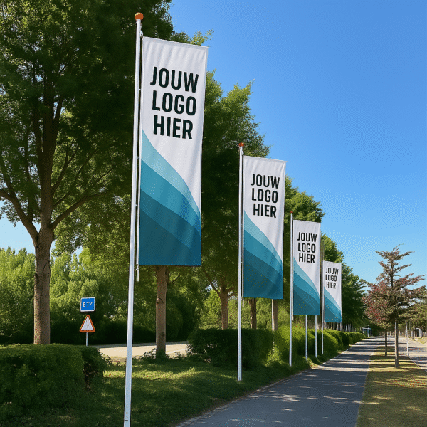 Met een bedrukte baniervlag van De Postergigant zorg je voor een professionele, duurzame en opvallende presentatie van jouw merk.